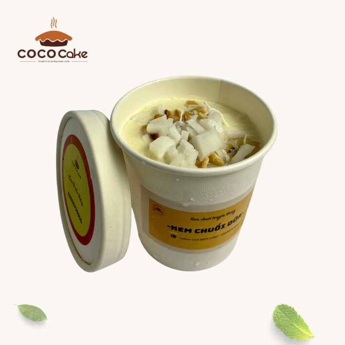 Kem chuối dừa bao gồm các thành phần: Chuối, dừa sợi, dừa non, đậu phộng